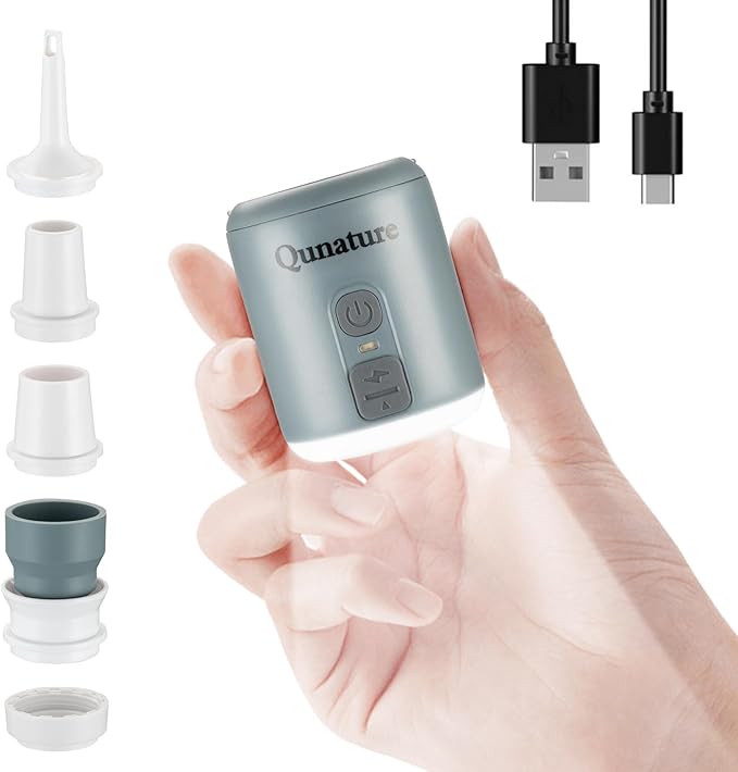 エアーポンプ 電動 (空気入れ/空気抜き/LEDライト)3in1 電動ポンプ 4.5kPa 180L/min 超高速 キャンプ エアーマット エアー枕 浮き輪 エアベッド プール 圧縮袋対応 5種ノズル Type-C USB充電式 1600mAh コンパクト 携帯式 収納袋付き 日本語説明書 | KAZESHOP