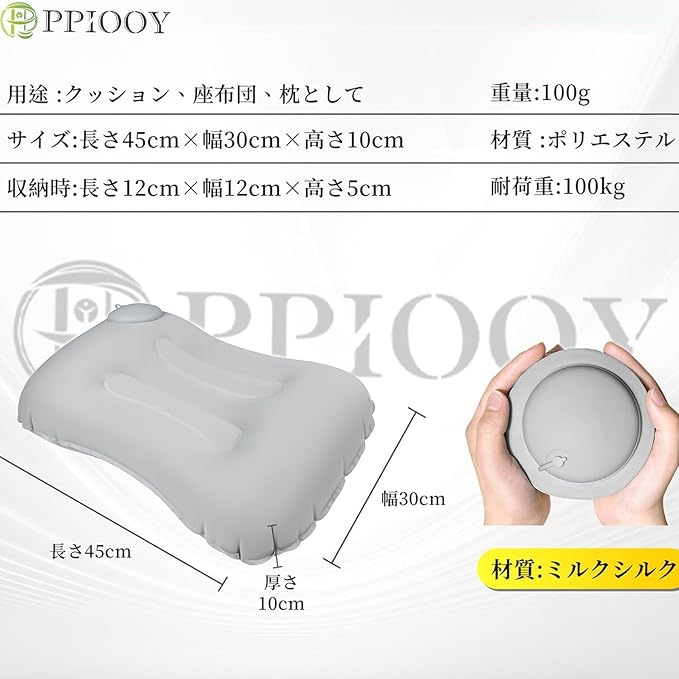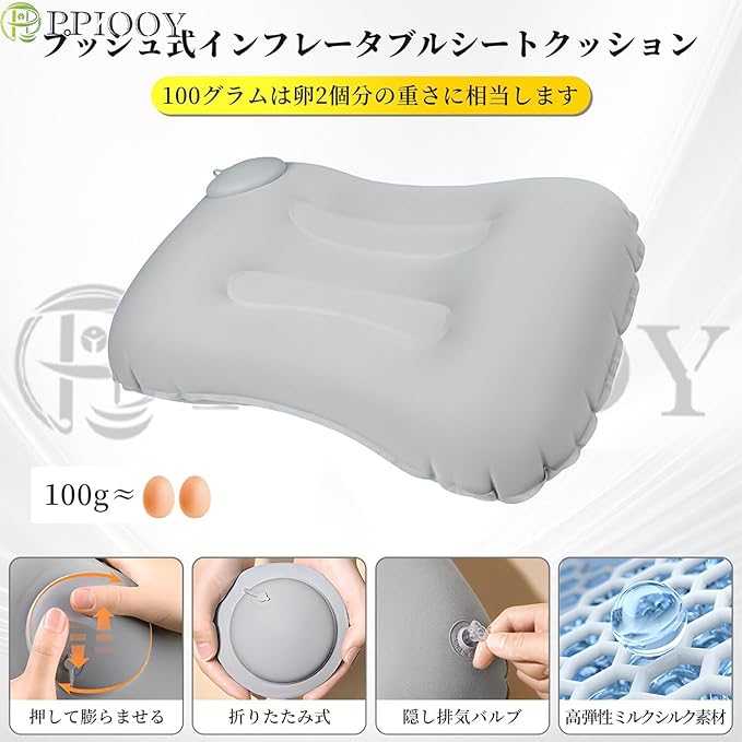 エアー座布団はお尻が痛くならない厚みのある設計。キャンプ 座布団や山登り用のクッションとして最適。折りたたみくっしょん コンパクトで収納も楽々。