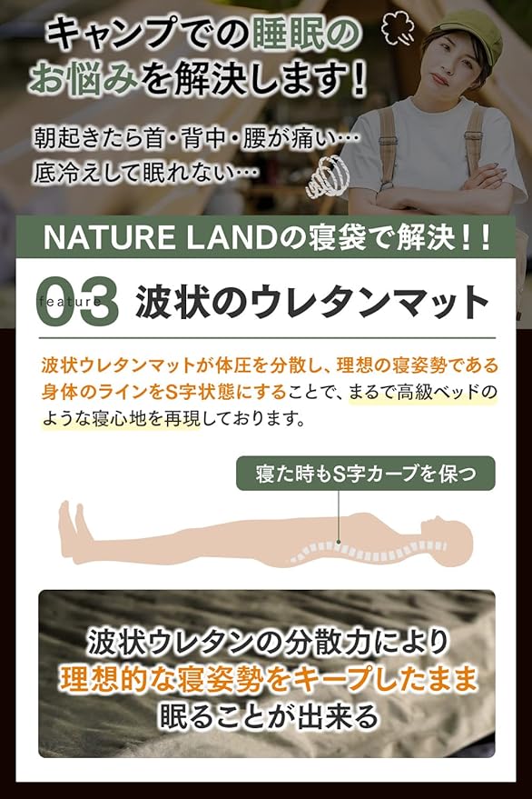 ✅【極厚10cm】弾力性に優れた厚さ10cmのウレタンフォームはキャンプやアウトドア、車中泊の際の睡眠時によくあるお悩みの「底冷え」「底つき感」「車内の段差や地面のデコボコ」などを解消します。さらに、理想的な寝姿勢を実現するために計算し尽された波形状のフォーム構造は空気によるマットの張りとウレタンによる程よい沈み込みを実現し、快適な睡眠をお約束いたします。