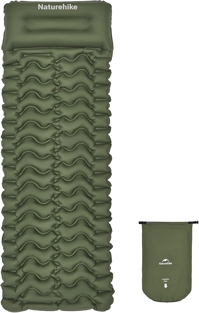 Naturehike キャンプ マット充気袋式 エアマット コンパクト 枕付き 6.5cm 厚 断熱 R1.6 防撥水 耐久 キャンプ用 車中泊 防災 登山 お花見に 持ち運び便利 軽量 収納袋付き | KAZESHOP