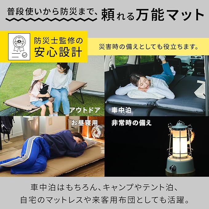 厚みがありながら大型バルブと高反発のウレタンで空気もすぐに入ります。オートキャンプはもちろん車中泊マットとしても十分に活躍します。急な来客や防災用マットとしても最適。