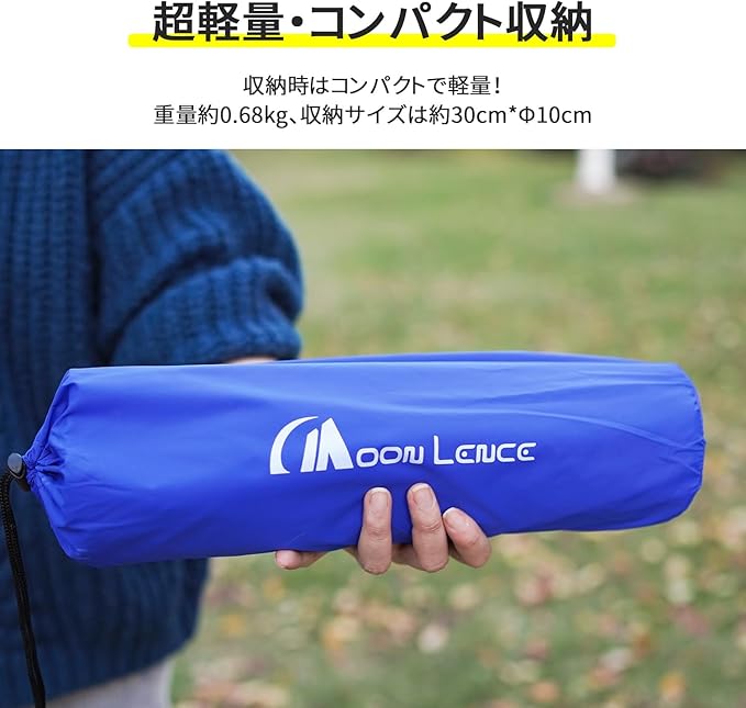 【超軽量・コンパクト収納】膨らんだサイズ:長さ192cm 幅59cm 厚さ5cm、重さ:0.68kg、収納サイズ:30cm*Φ10cm。収納袋付き 超軽量キャンプマット及びコンパクト収納なので、楽に持ち運びます。だれでも簡単に様々な場所へ持ち運ぶことができます。