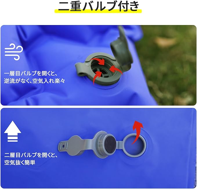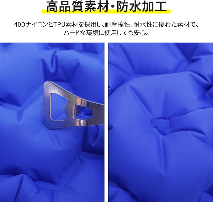 【空気入れ簡単&耐水加工】空気漏れのを心配する必要がない! 二重バルブの設計によって、楽に空気を入れる、排気も簡単です。防水加工した生地を採用して防水性と防湿性が優れています。キャンプマットとしてはおすすめです!仕事場での寝泊まり、仮眠用としても最適です。