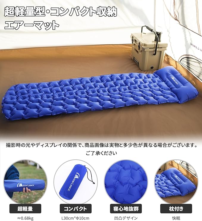 MOON LENCE エアーマット キャンプ マット 枕付き 超軽量 コンパクト 車中泊マット テントマット キャンピングマット 防水防潮 車中泊 テント泊 防災 登山 キャンプ用品 アウトドア 収納袋付 | KAZESHOP