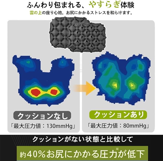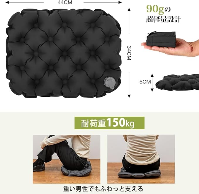 エアクッション レジャーシート 厚手 一人用 エアー 座布団 3D 体圧分散 折りたたみ座布団 軽量 「空気感」お尻 クッション 防水 飛行機 夜行バス 花見 釣り 公園 バス 旅寝工房 | KAZESHOP