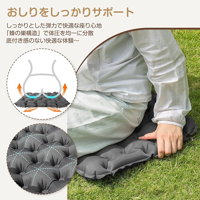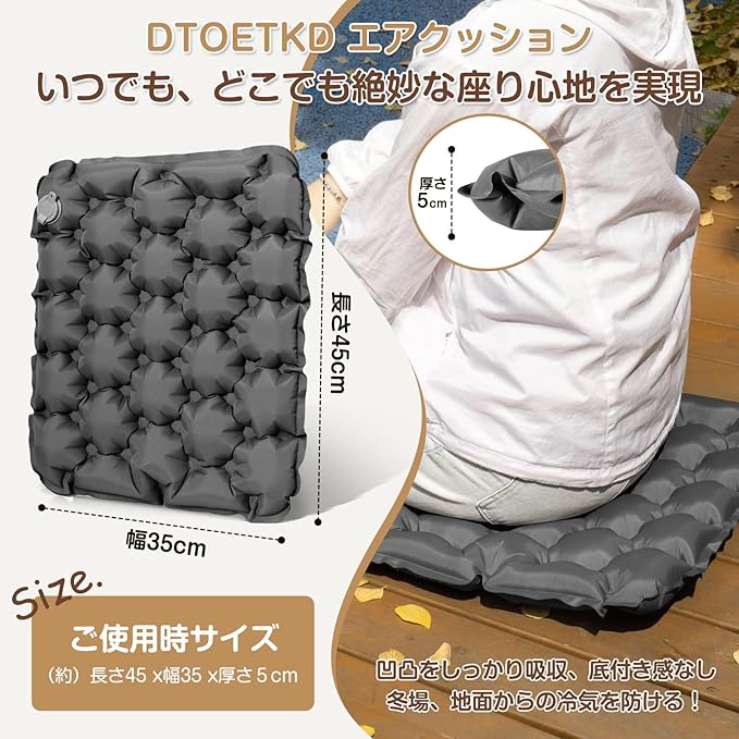 アウトドア クッション DTOETKD エアークッション 折りたたみクッション おしりクッション 軽量 携帯 座布団 運動会 スポーツ観戦 レジャー キャンプクッション シート オフィス 収納袋&日本語取扱説明書付き (グレー) | KAZESHOP