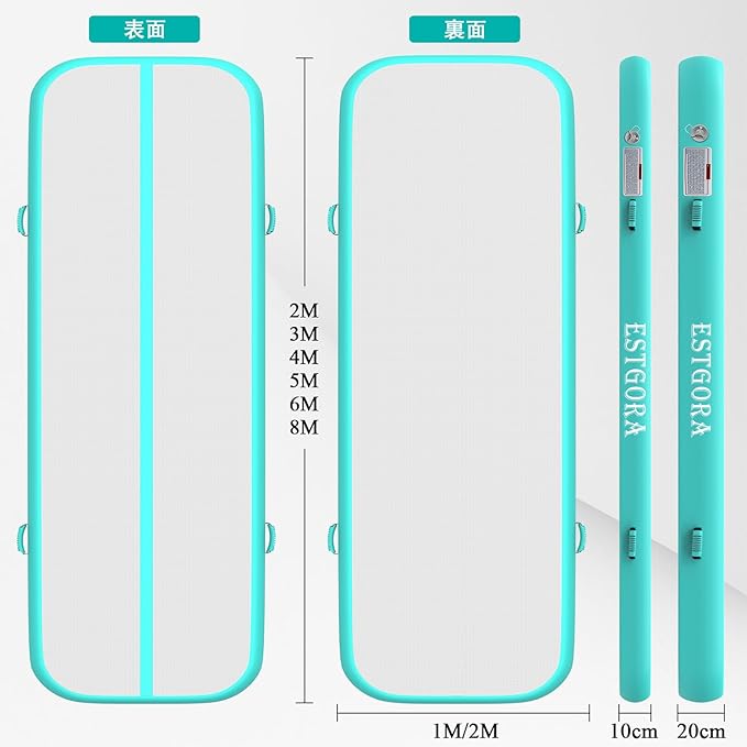 Estgora エアートラック 体操転倒マット インフレータブル マット 2/3/4/5/6/8M 長さ 1/2M幅 10/20CM厚さ ポンプ付き 自宅用/幼稚園/学校のトレーニング/チアリ ディング/テコンドー/ヨガ/テコンドー/武道 折りたたみ式