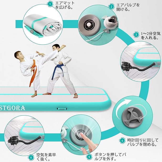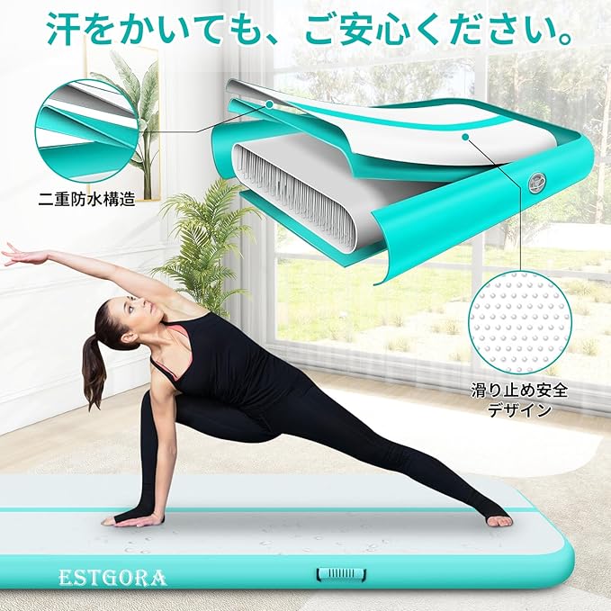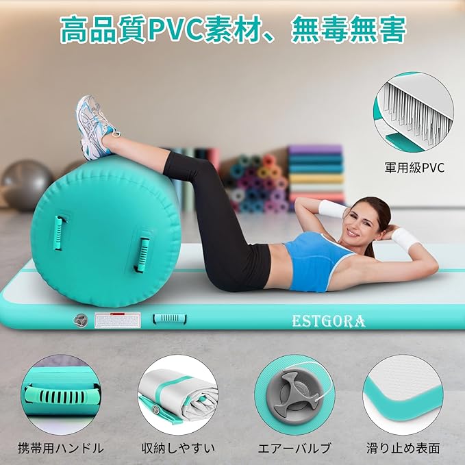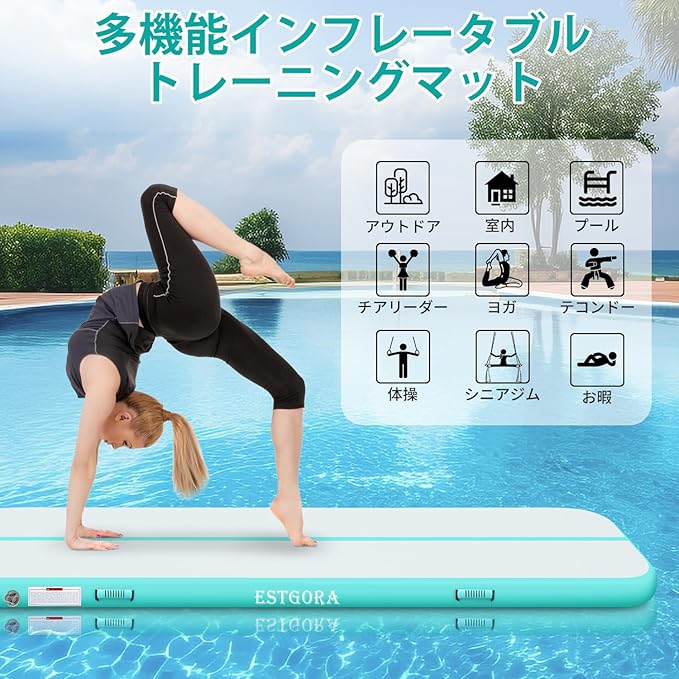 【最新型のエアトラック登場】Estgoraエアマットは、ご自宅の庭、ジム、テコンドー・ダンススタジオ、学校、公園、ビーチ、プールなど、さまざまな場所でご利用いただけます。体操トレーニング、ダンス練習、テコンドー、タンブリング、レクリエーション、チアリーディング、ヨガなど、多彩な運動プログラムに対応。