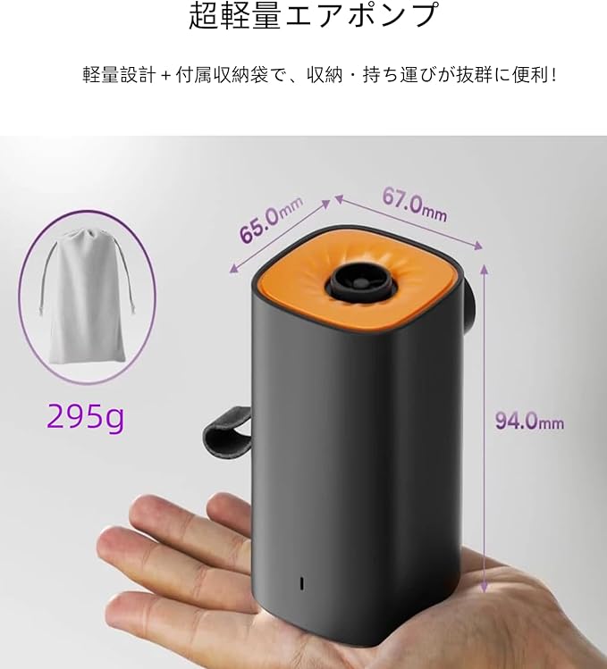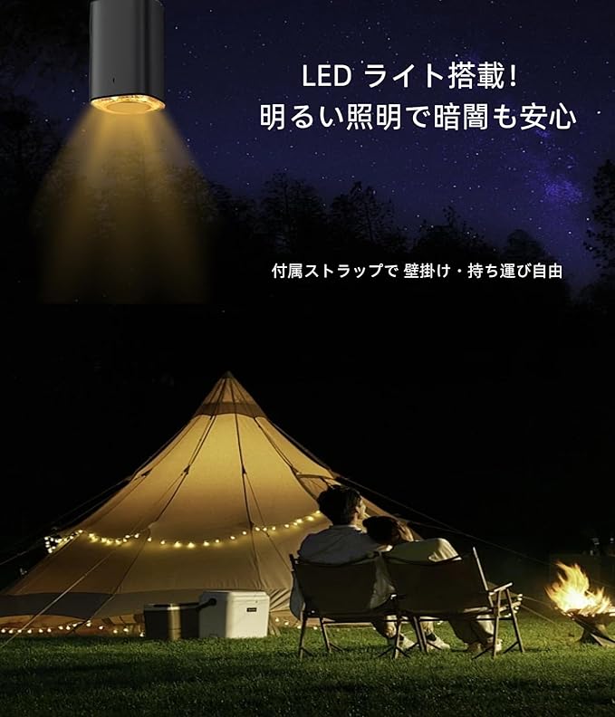 【超軽量・ポータブル設計】 わずかなスペースにも収まるコンパクトサイズで、重さも軽量。バッグにもすっきり入るため、キャンプや外出先でも気軽に持ち運べます。USB充電式でコードレス使用が可能、操作もボタン1つで扱いやすい仕様です。
