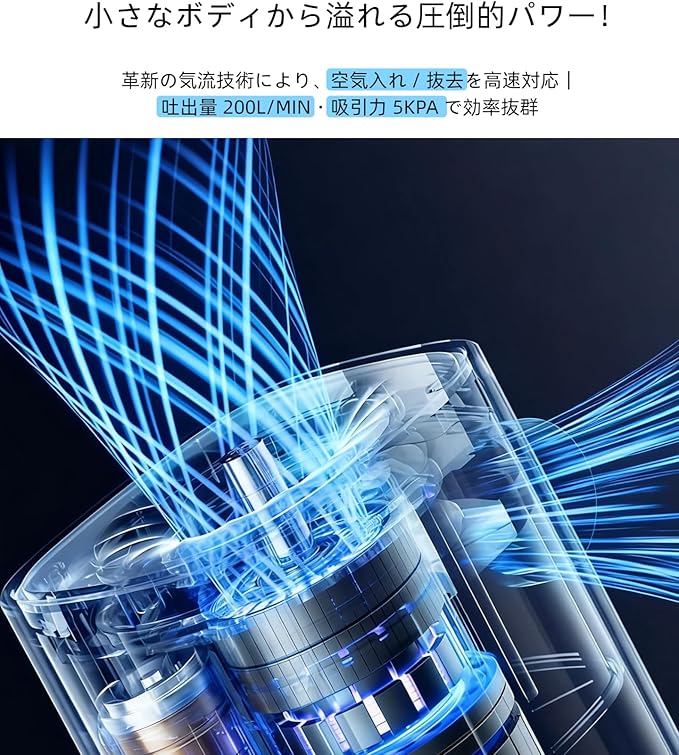 空気入れ 電動エアーポンプ 小型ポータブル XWJ 空気入れ・空気抜き両対応 5kPa強力送風 超軽量 静音設計 USB充電式 LEDライト搭載 多用途ノズル4種付属 浮き輪 エアーマット 真空収納袋 対応 | KAZESHOP