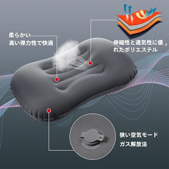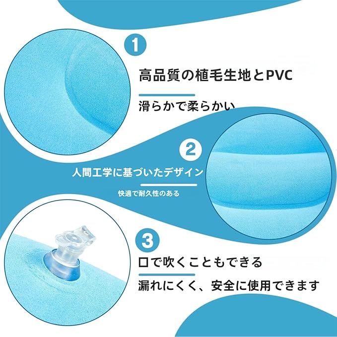 【押して膨らませる・使いやすい】クッション本体に一体型ポンプが内蔵されており、ポンプを押すだけで簡単に膨らませることができます。また、口を膨らませる必要がないため、衛生面でも安心してお使いいただけます。