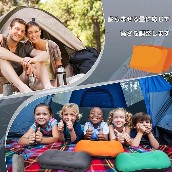 【様々なシーンで使用可能】キャンプやピクニックなどのアウトドアシーン、スポーツ観戦、デスクワーク、長時間の旅行など、あらゆるシーンで快適な座り心地を提供するポータブルクッションです。