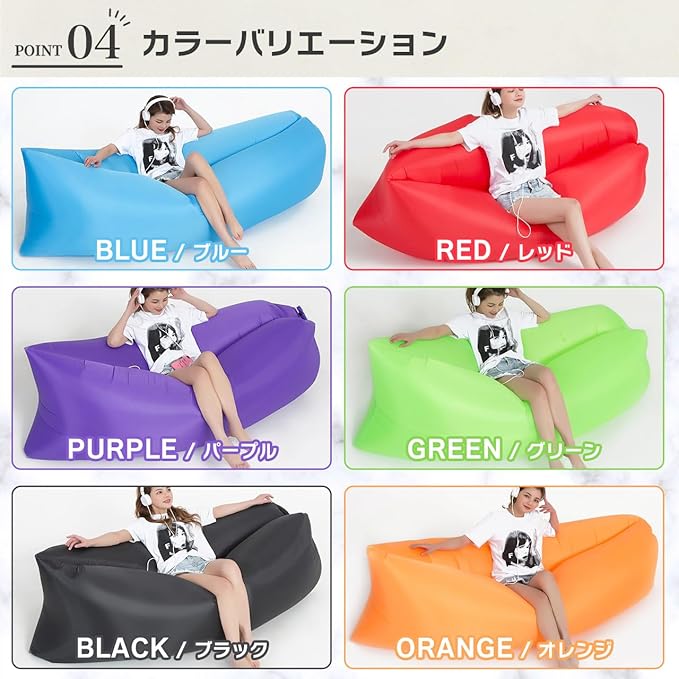 ✅【商品説明】エアソファは、アウトドアやインドアで使える便利なアイテムです。収納袋付でコンパクトに収納でき、持ち運びに便利です。空気入れ不要で、どこでも簡単に設置できます。