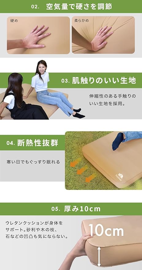 Pasinaz インフレーターマット 厚さ10CM 幅70cm キャンプマット 自動膨張 断熱 防災マット トリプルバルブ構造 ロール ウレタン 車中泊 マット タブル キッズマット エアーマット アウトドアコンパクト マットレス ソロキャンプ | KAZESHOP
