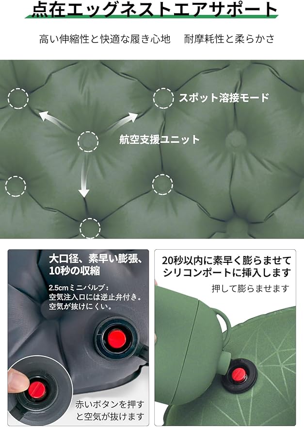 XXIAOTIAN(ゼクシオティアン) 折りたたみマット エアークッション クッション 収納ケースが空気ポンプ 厚さ5cm キャンプマット 自動膨張 3D 体圧分散 座布団 アウトドア マット 反射ステッカー キャンプ アウトドア用品 ダックグリン