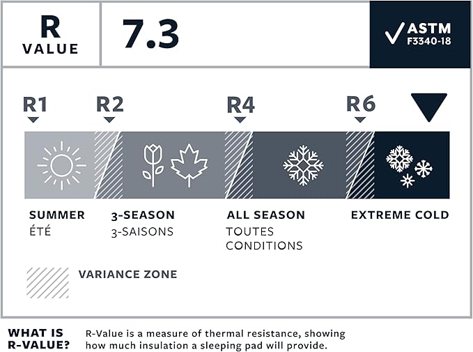 反射ThermaCaptureテクノロジーが放射熱を閉じ込め、三角コアマトリックス構造が対流熱損失を最小限に抑え、7.3 R値を提供し、極端な条件下に最適です。