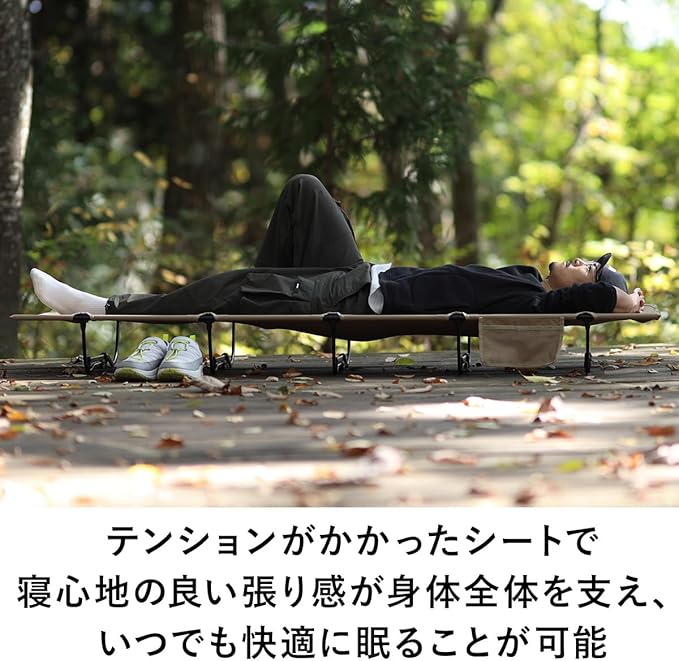 ※極端に片側に重心をかけると製品が転倒する恐れがありますので、コットの中央から乗り降りを行ってください。