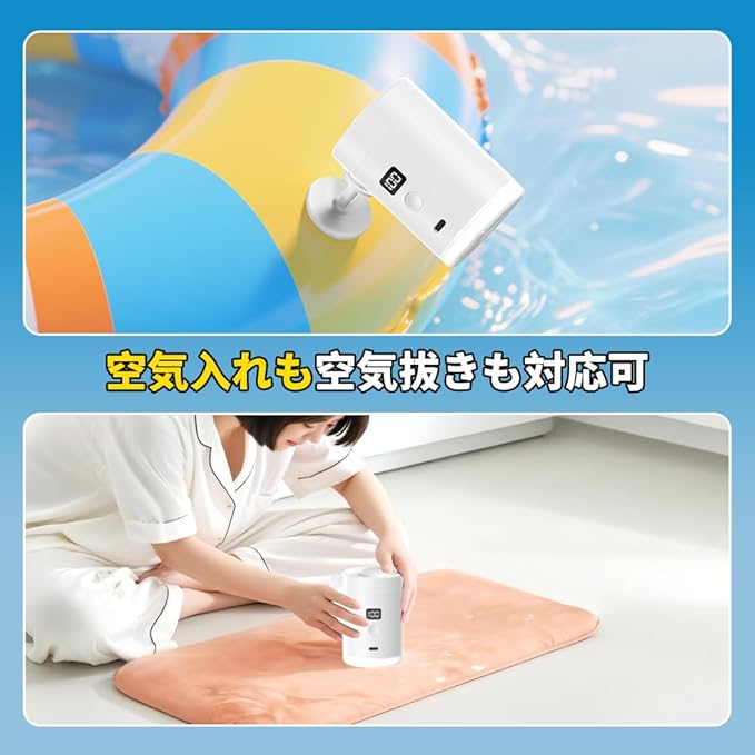エアーポンプ 電動ポンプ 電動エアーポンプ 空気入れ・空気抜き【過熱保護&ライト付き&LCD表示】USB充電式 超軽量 大容量バッテリー 5種類ノズル付き 連続使用可能1時間 インフレーターマット 浮き輪 プール ゴムボート エアベット ビニールブール 真空圧縮袋などに適用 | KAZESHOP