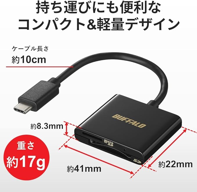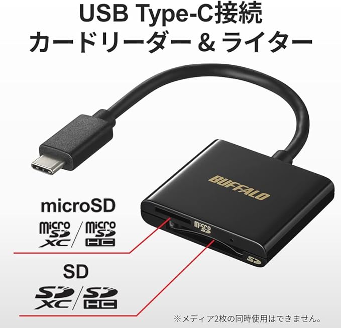 バッファロー USB3.2 Gen1 Type-C カードリーダー 2-in-1 【SD/SDHC/SDXC/microSD/microSDHC/microSDXC/UHS-I 対応 】 iPhone 16 / 16 Pro / 15 / 15 Pro/iPad スマホ タブレット パソコン 写真バックアップアプリ BSCR115U3CBK | KAZESHOP