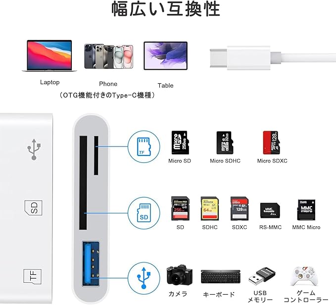 SDカードリーダー 【業界新版 iPhone16に対応】 Type-C メモリカードリーダー 3in1 USB/SD/TF変換アダプタ 0TG機能 設定不要 写真/ビデオ 高速伝送 双方向転送 カメラリーダー iPhone15/タイプC スマホ/MacBook/PC/Galaxy/Android/USB Cなど機器に適用 | KAZESHOP