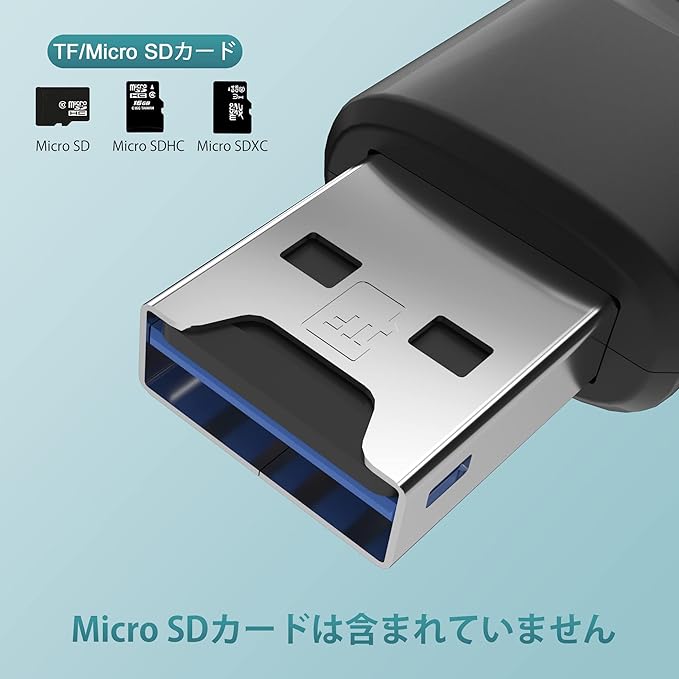 【usb 3.1マイクロSDカードリーダー】:理論上のUHS-IスピードクラスのmicroSDXCカードの最大書き込み速度104MB/sまで到達可能です。 microSD および Micro SDHC カードも対応し、最大2TBのTFカードをサポートできます。(※ご注意:メモリカードは付属しません。)