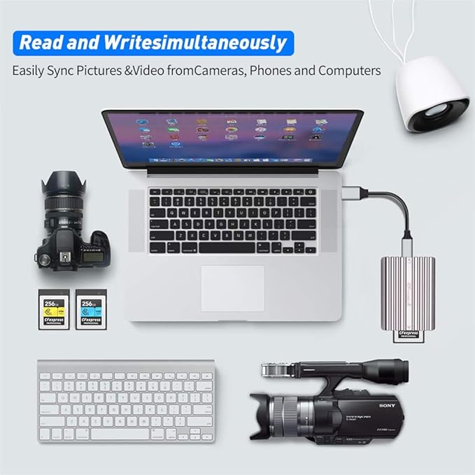 製品の用途:CFexpressカードをUSB3.0またはUSB3.1スロットに拡張するのに適しています。 (XQDカードには使用できません)。CFexpressメモリーカードUSB 3.1 Gen 2は、Windows、Mac、Linuxなどのさまざまなプラットフォームと互換性があり、PC、デスクトップ、Mac、iPadでデータ転送を容易にします。 また、タイプCコネクタにも対応しており、抜き差しが簡単です。