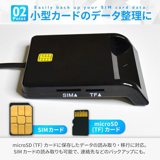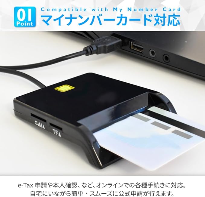 【様々な接触型ICカードに対応】マイナンバーカードやSD・SIMカードにも対応のため、作業効率が大幅にアップ。