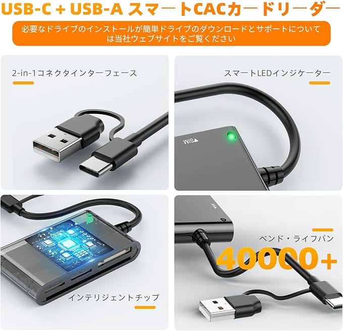 ICカードリーダー 6 in 2 マルチメモリカードリーダー、SDHC/SDXC/SDカードリーダー&マイクロSDカードアダプター付き、タイプc USB-A&Type-C 高速転送 SIM/MS/M2/MMC RS対応スマートカードリーダ Windows/Linux/Mac OS対応 設置不要 | KAZESHOP