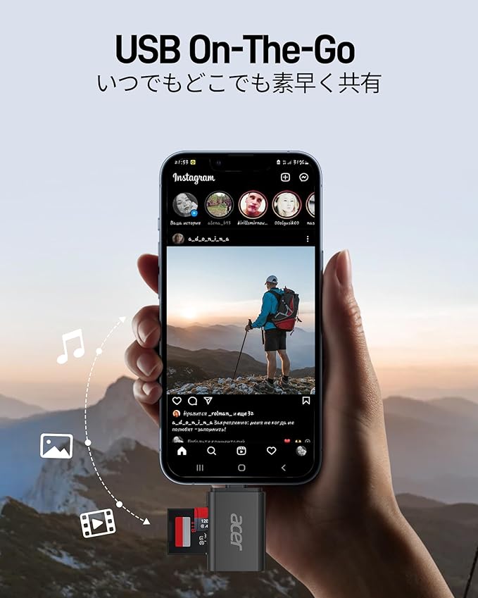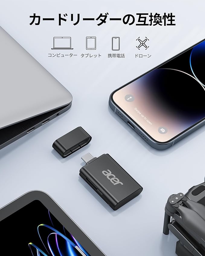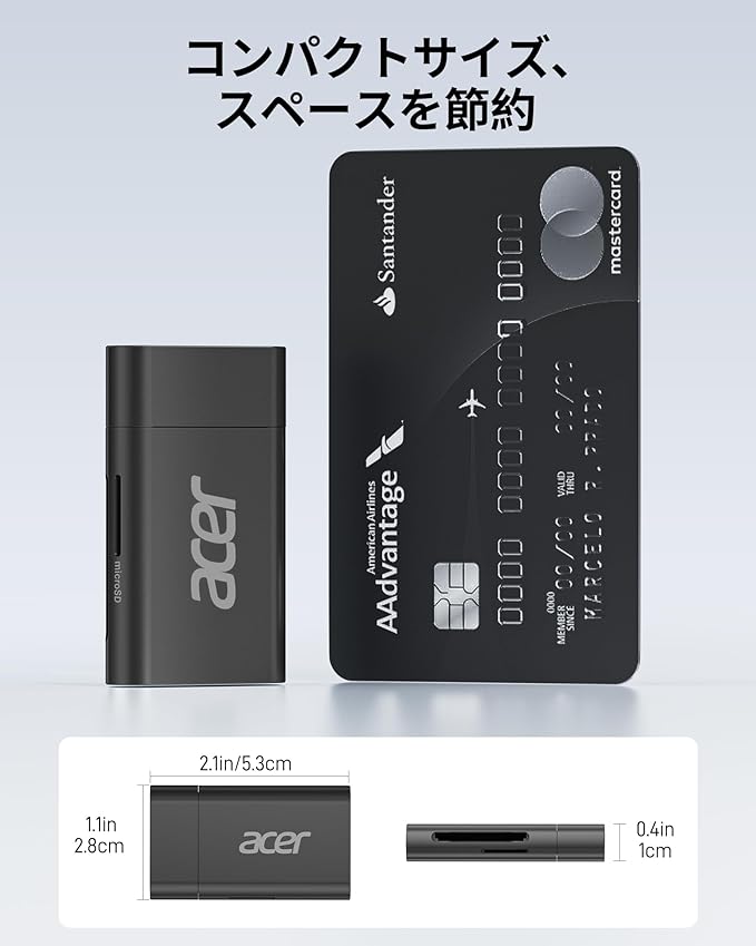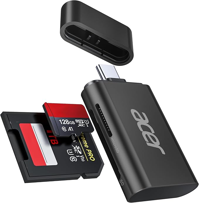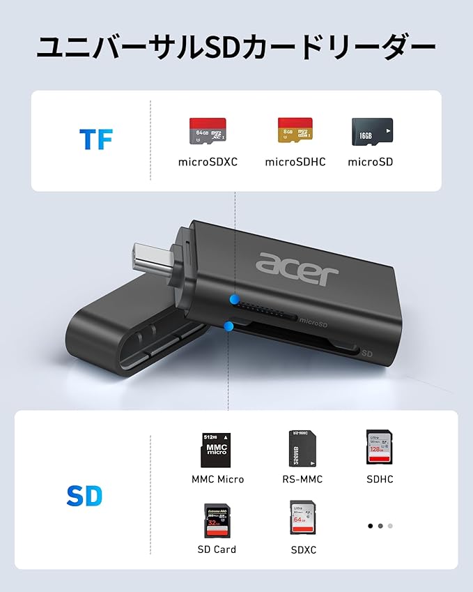 Acer USB-C SD カードリーダー SD 4.0 2-in-1 SD/SDXC/SDHC/Micro SD (TF)/Micro SDXC/Micro SDHC用 UHS-II対応 iPhone15/16、iPad Pro/Air、MacBook Pro/Air、Androidノートパソコン、タブレットに対応 タイプC 高速転送 メモリーカード リーダー (ブラック) | KAZESHOP