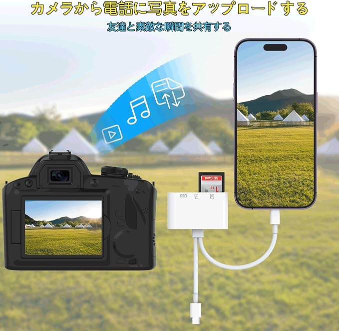 ✅【3-in-2カードリーダー】1*USBポート+ 1*SDポート(SD/SDHC/SDXC/MMC/RS-MMC)+ 1*TFポート(マイクロSD/マイクロSDHC/マイクロSDXC)+ 1*ライトニングポート+ USB Cポート。 いつでもどこでも写真、ビデオ、ファイルを共有できます。携帯電話の容量不足や写真の多さを心配する必要はありません。256GBまでのTF/SD/USBに対応。