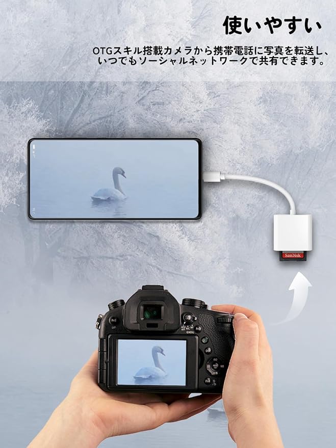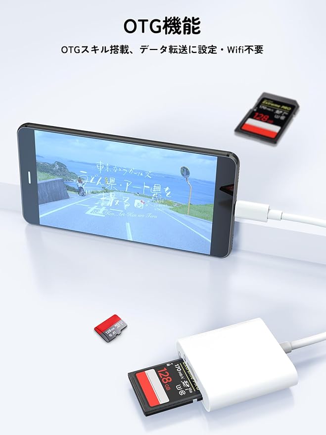 【OTG機能】このSDカードリーダーはotg機能のおかげで、OTG技術はホストなしでデバイス間のデータ転送ができます。Androidスマートフォン、タブレット、Windows、Mac、Linux、ChromeOSなど、さまざまなTYPE-Cデバイスで使用できます。