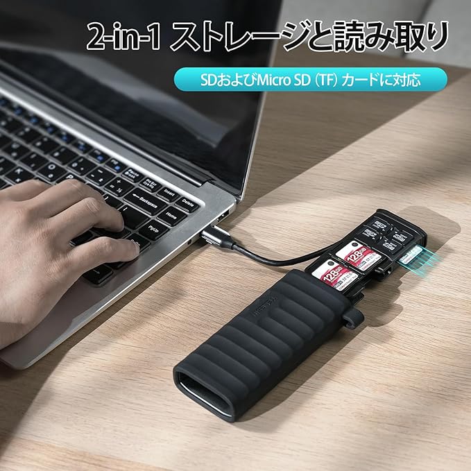 特徴 SDカード収納, USBコード内蔵, 簡単なセットアップ, 超高速伝送