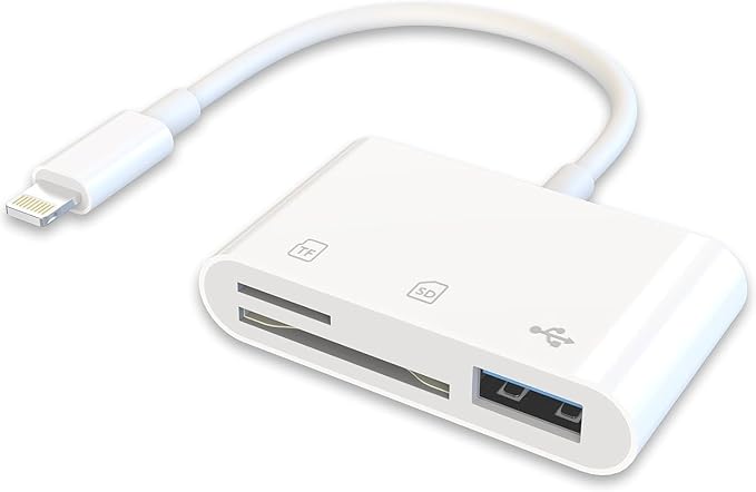 【3in1 SD カードリーダー 】3in1 iPhone SD カードリーダーは TF/SD/USB に対応し、写真、動画などの転送、閲覧が簡単にできます。1条でiPhoneのストレージ不足を解決し、プラグアンドプレイ設計で即插即用、旅行、日常整理などに便利です。