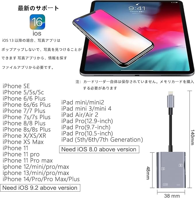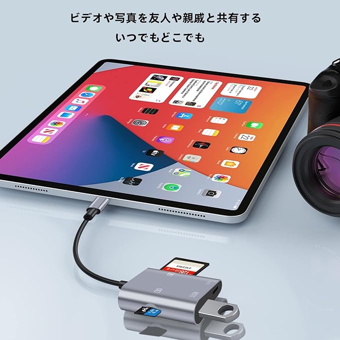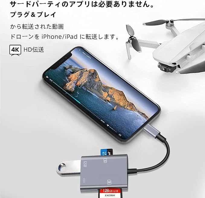 【プラグ&プレイ、複数カードの同時使用】PC/WIFI/Bluetooth/ダウンロードは不要。i0S標準の[ファイル]アプリからデータ転送。複数のカードの同時使用をサポート。