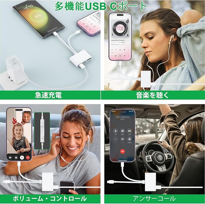 【USB C - USB Cオーディオアダプタ】このPhone 15 USB Cヘッドフォンアダプタは、ヘッドフォンで音楽を聴いたり、歌ったりすることができます。プラグアンドプレイでお気に入りの音楽を楽しめます。このUSB Cアダプターは最大60Wの急速充電にも対応しています。いつでもデバイスを急速充電することができ、バッテリー不足の心配がなく、さらに時間を節約することができます。