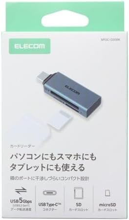パソコンやタブレット、スマートフォンとの接続はUSB 5Gbps(USB3.2(Gen1))、2つのスロットはどちらもUHS-I(最大104MB/s)に対応しているので、高速データ転送が可能です。