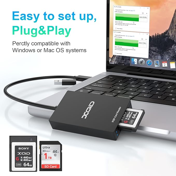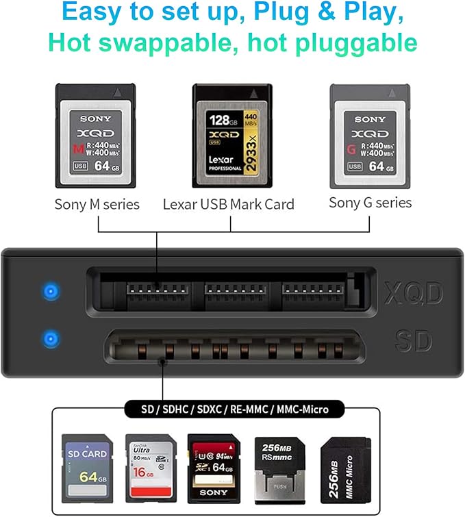 ✅【高い互換性】XQDカードリーダーは、Sony GシステムとSony Mシリーズの読み取りと書き込みを完全にサポートし、Nikon D4/D5/D500やXQDカードを搭載したその他のカメラなどのプロ仕様の機器に適しています。 Windows 2000/XP/Vista/7/8/8.1/10 (32/64bit)、Mac OS X以降、ドライバーなしに対応。 SDカード(SDXC/SDHC/SD/Extreme III SD/Ultra II SD/MMC) 注意:XQD N、S、Hシリーズはサポートされていません。