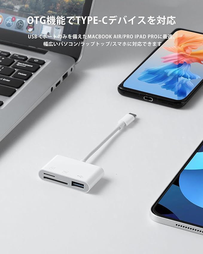 AGPTEK SDカードリーダー 3in1 カメラアダプタ Type-C接続対応 SD/TF読取 Micro SD対応 USB OTG対応 ファイル読み込み 高速データ転送 USB-C機器対応 メモリカードリーダー 多機能 スマートフォンに最適 変換アダプター アプリ不要 テレワーク 在宅勤務 白 | KAZESHOP