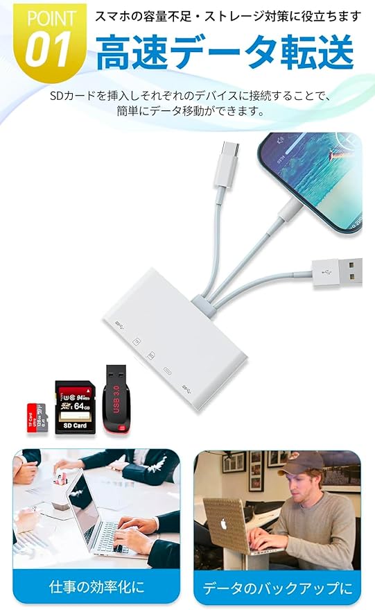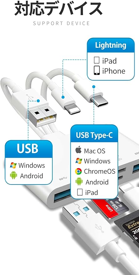 互換性:SD/TFカードリーダーUSBアダプターは、i - OS 9.1以降のi - OSデバイス、OTG USB Type-C Androidフォン/コンピュータ、およびUSBポートを備えたその他のデバイスをサポートします。最大サポートメモリーカード容量1TB。 (パッケージにはSDカードとMicro SDカードは含まれていません)。