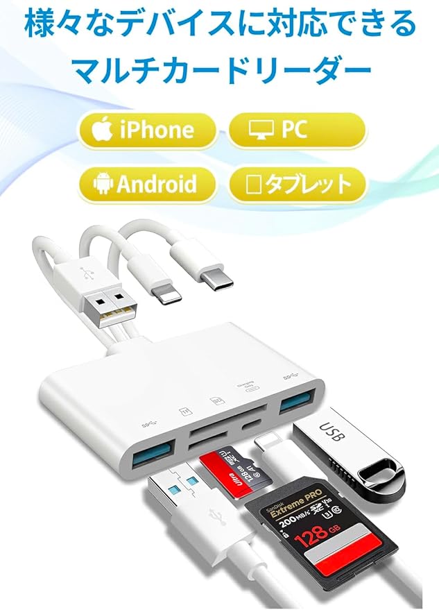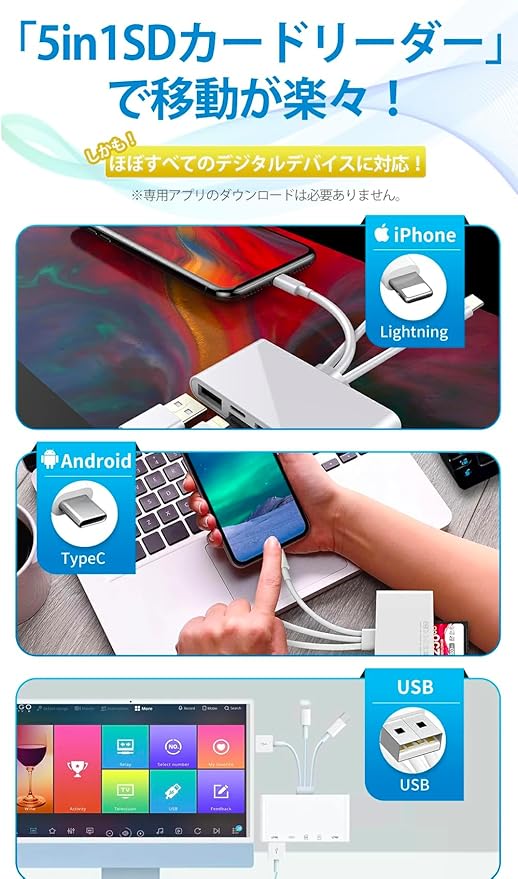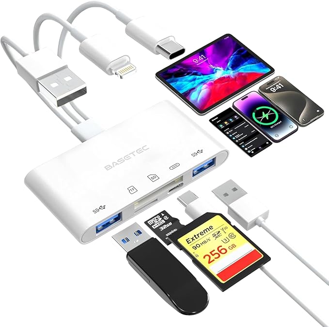 BASETEC 5in1マルチカードリーダー SD カードリーダー iPhone iPhone カメラリーダー スマホカードリーダー iPhoneバックアップ カードリーダー 写真/動画/PDF転送 iPhone iPad android TypeC | KAZESHOP