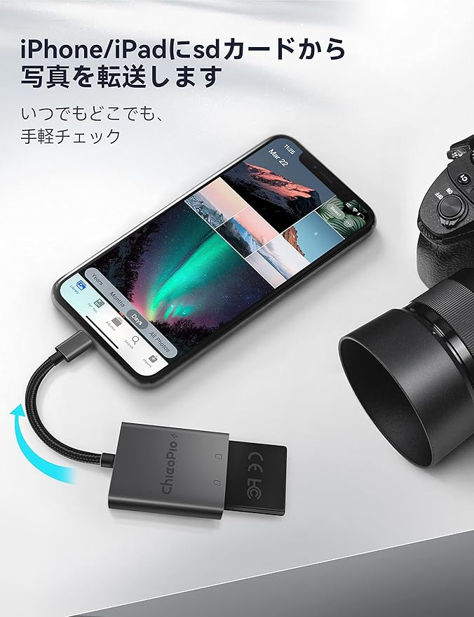 【iOSデバイス向けのアイデア】カメラメモリーカード用のChiaoPioカードリーダーは、iOS9.2以降を搭載したカメラからiPhone/iPadにデータを転送するための最も便利な方法を提供します。