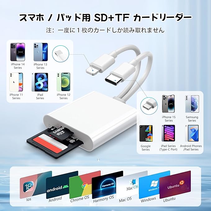 SD リーダー デュアルスロット 2in1 i-Phone/Type-C 対応 SD/TF (microSD) カード両対応 最大 1TB 支持 USB3.0 高速伝送 双方向データ転送 OTG 機能 即時接続(設定不要) i-Phone/iPad/iOS/Windows/Android 最新 OS 対応 | KAZESHOP
