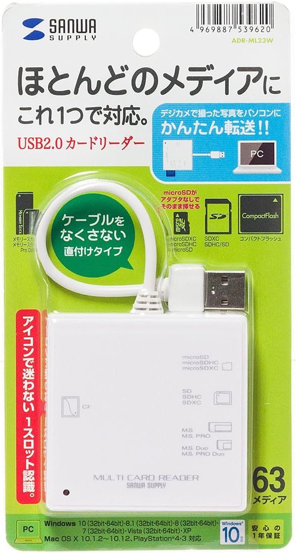 4スロットでいろいろなメディアが読み書きできるコンパクトカードリーダーです。