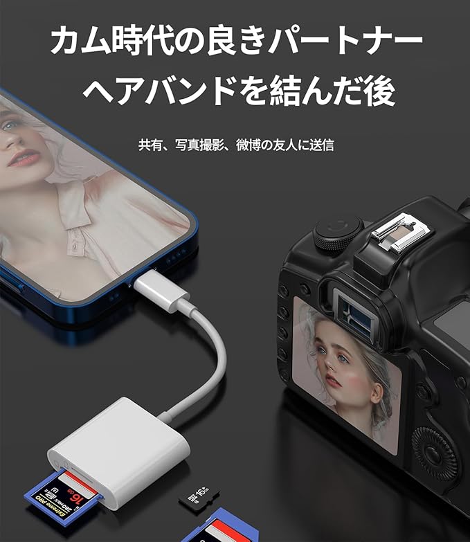 【超高速転送】このカメラカードビューアリーダーの転送速度は、iPhoneとiPadで最大20MB/S〜30MB/Sで、カメラの写真やビデオを数秒で対応iPhone /対応 iPadに簡単に転送できます。時間を大幅に節約して、より有意義なことをすることができます。(具体的な読み取り速度はメモリカードに関係します!)