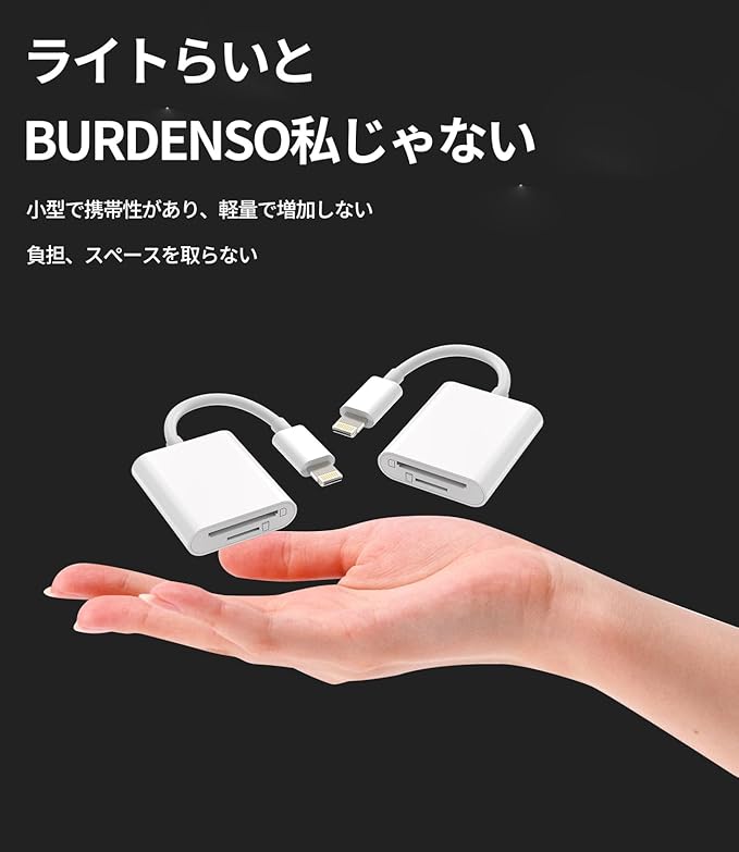 このLightning対応SDカードリーダーは、対応iPhoneと対応iPad用に特別に設計された2in1デザインです。一つのSDカードスロットと一つのMicroSD / TFカードスロットを備え、スマホやデジカメからの写真やデータのバックアップ、転送が容易になります。同時に一つのカードスロットしか読み取らないため、データの転送は安定しています。また、読み込み速度は使用するストレージカードに依存します。2パックで販売しているため、一つを自宅で使用し、もう一つを持ち運ぶのに便利です。対応iPhone、対応iPadなどのLightningデバイス、に広く対応しています。写真やデータのバックアップ、転送に便利なこのアダプタをぜひお試しください。