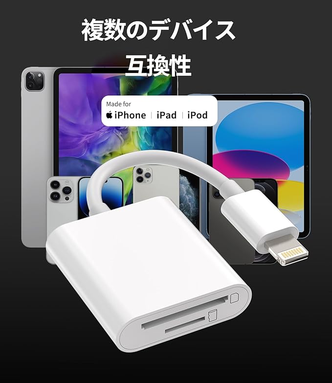 【広範な互換性】アイフォンsdカードリーダー対応iPhone 14/14promax/14pro/13/13 Pro/13 Pro Max/13 Mini/12/12 Pro/12 Pro Max/12 Mini/11/11 Pro/11 Pro Max/XS/XS Max/XR/X/8 7 6 Plus、対応iPad pro airなど.