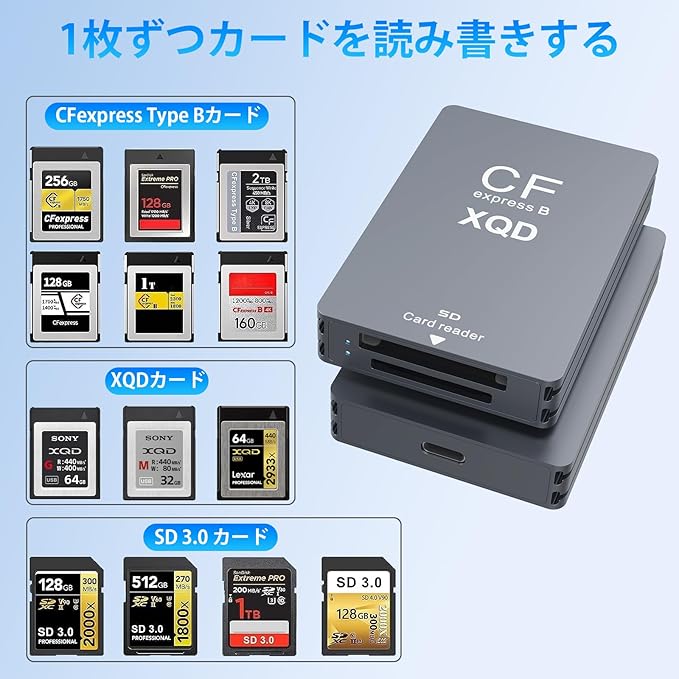 CFexpress Type bカードリーダー5 in 1 USB C/USB A タイプb 10Gbps USB3.2 Gen2 最大2TB CFexpress/XQD/SDカードリーダー(CFexpress Type B+SD 3.0カード+XQDカード対応)、CFexpressアダプターメモリカードリーダー(Windows/Mac/Linux/Android対応) | KAZESHOP