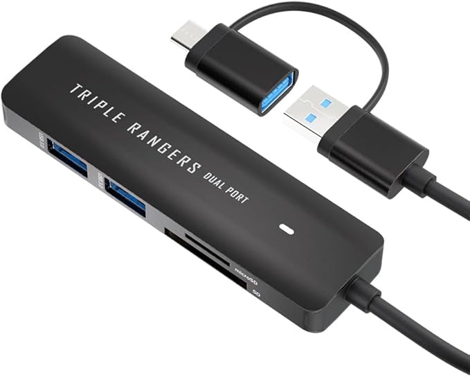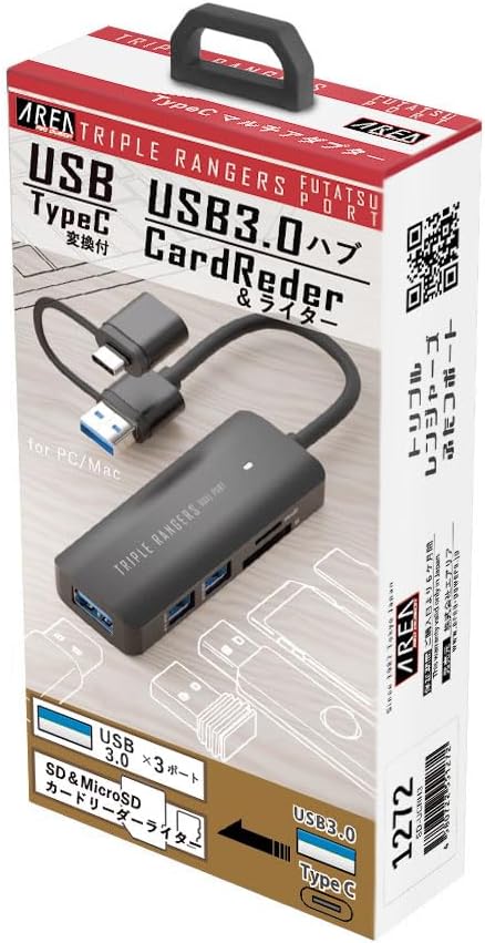 USB3.0 3ポートとSD/MicroSD カードリーダーライターをコンパクトな金属ボディに一体化。パソコンとの接続はTypeAとTypeC両対応。