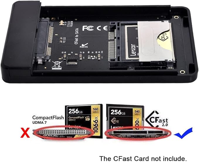 CFast - SATA アダプターです。サイズは2.5インチ HDDと同じです。どのメモリCFastカードもアダプターで受け入れられます。
