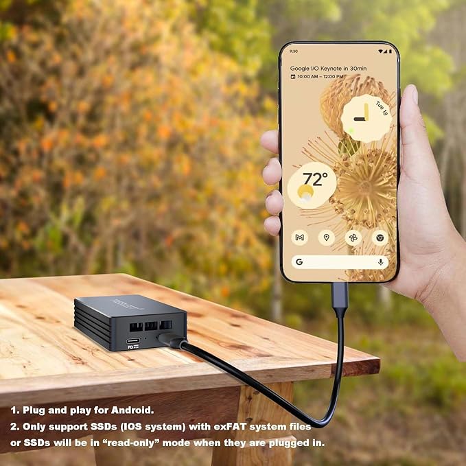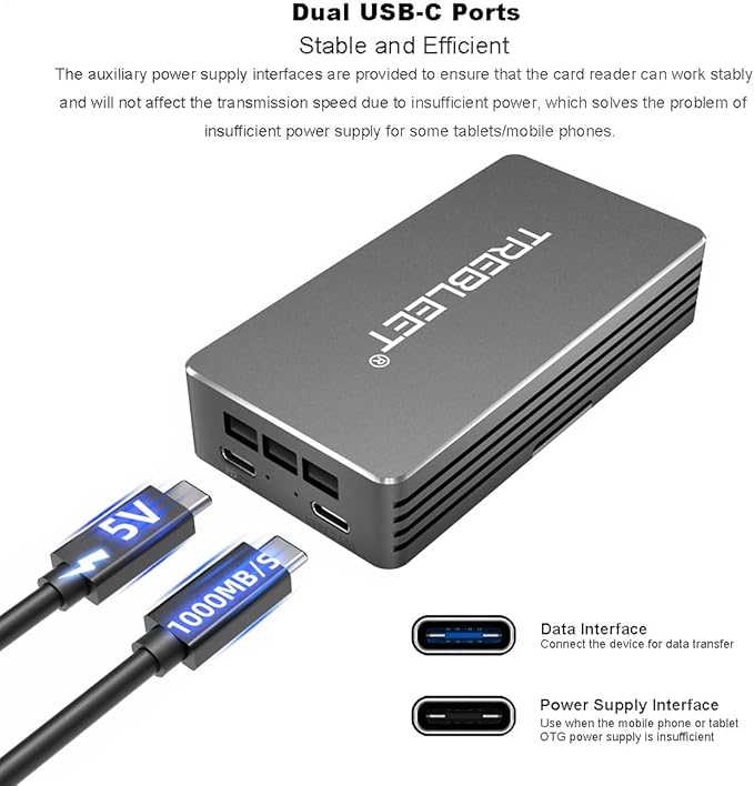 モバイル対応:一部のタブレットやスマートフォンでのOTG電源供給不足によるカード読み取り異常を解決するための外部USB-C PD電源ポートを搭載。